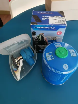 In vendita fornello Campingaz Twister Plus PZ con cartuccia di gas CV 470. Fornello portatile e compatto. Cartuccia di gas Butano/Propano da 450g. Include scatola protettiva per il fornello.