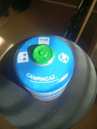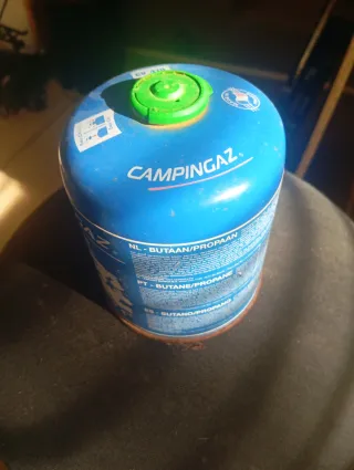 Bombola a gas butano intercambiabile Campingaz con ancora un po' di gas. Ideale per campeggio, fornello da campeggio, stufa da camper, terreno, orto, cucina da butsir.