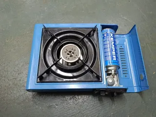Cucina portatile da campeggio, ideale per le tue avventure all'aperto. Il suo design compatto la rende facile da trasportare e conservare. Marca: Campingaz, modello: Camp Bistro Plus, accensione piezoelettrica, controllo della fiamma regolabile. Una buona cucina, usata circa 15 volte. Ottimo fuoco.