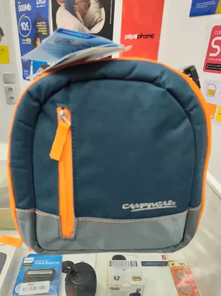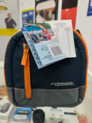 Borsa termica Campingaz da 6 litri, ideale per mantenere il cibo fresco. Il design combina toni blu e grigi, ed è realizzata in poliestere. (6 L, 300 mm, 250 mm, 120 mm, 259 g) - Capacità di 6 litri. - Chiusura con cerniera. - Maniglia per il trasporto. Nuova.