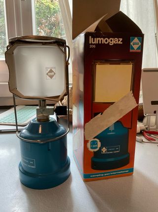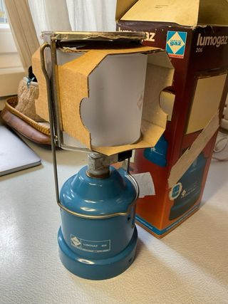 Lanterna a gas Campingaz modello 206 L, ideale per il campeggio. La struttura è in metallo con diffusore in vetro. - Modello: 206 L - Marca: Campingaz - Materiali: Metallo, vetro, plastica lanterna a gas Campingaz Camping 206 L. È una lampada da campeggio robusta e stabile. Funziona con cartucce forabili C 206. È dotata di una maniglia per il trasporto o per appenderla. La sua potenza è regolabile da 20 W a 80 W. Il peso è di 595 g Altezza 24,8 cm diametro 10,2 cm Senza cartuccia