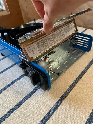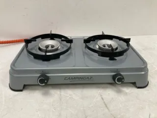 Cucina portatile Campingaz a due fuochi. Ideale per il campeggio o l'uso all'aperto. Design compatto e portatile. Due bruciatori per cucinare. Costruzione robusta.