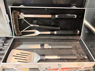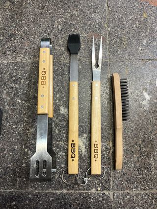 Set di utensili per barbecue. Usati una volta, in perfette condizioni. Include: pinze per carne, pennello per salse, forchetta per sfilettare e spazzola pulente.