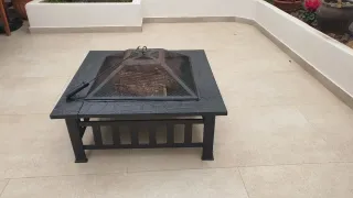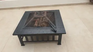 Brasero da giardino con un design moderno e robusto. Ideale per creare un ambiente accogliente all'aperto. Struttura principale in metallo. Dettagli decorativi che imitano la pietra.