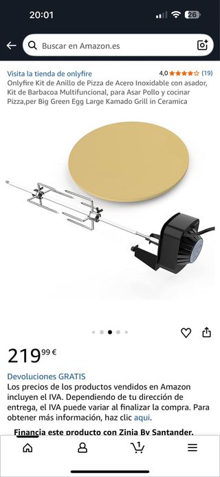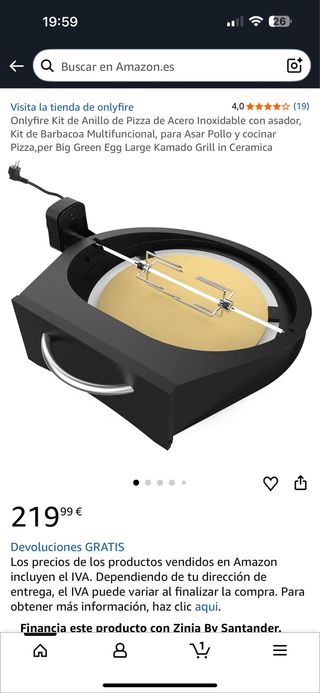 Kit per anello pizza in acciaio inossidabile del marchio Onlyfire, progettato per griglie e barbecue multifunzionali. Ideale per arrostire il pollo e cucinare la pizza. Compatibile con Big Green Egg Large Kamado Grill. Materiale: Acciaio inossidabile.