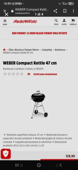 • In media, l'acquisto di Barbecue Weber su Wallapop è il 44% più economico rispetto all'acquisto di un prodotto nuovo
