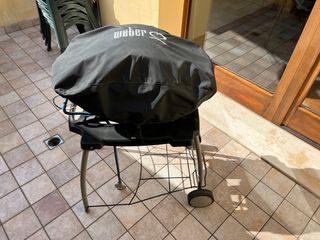Barbacoa Weber quasi nuova in colore nero, a gas. Griglia nuova da inaugurare. Manca un vassoio laterale. - Maniglia laterale per facilitare il trasporto. - Termometro integrato nel coperchio. - Vassoio raccogli-grasso estraibile.