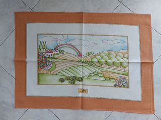Salvietta in puro lino bianca con inserto in organza. Ricamata in colore. Applicazione bordura di finizione colorato. Misura : - lunghezza 110 cm - larghezza 70 cm Completamente nuova. Mai usata. Prezzo di vendita 23 euro in offerta a 15 euro.