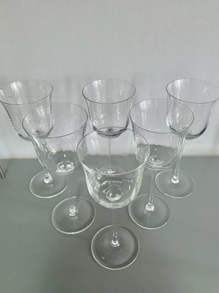 Elegante set di sei calici da vino in cristallo. - Design classico e raffinato. - Perfetti per ogni occasione. - Altezza cm 18, diametro superiore cm 7. Vintage in condizioni molto buone, non presentano nessuna frattura nè sbeccatura. L’imballaggio sarà fatto in modo molto accurato, ogni bicchiere verrà ben avvolto e protetto singolarmente.