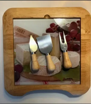 Tagliere in legno con vetro. - Dotato di 3 piccoli coltelli Nuovo mai utilizzato ma non ho più la scatola