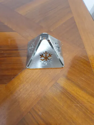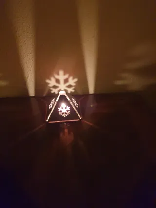 Elegante porta candela artigianale con decorazioni a forma di fiocco di neve. Perfetto per creare un'atmosfera calda e accogliente. Prodotto artigianale. Possibilità di avere più pezzi. - Design a piramide. - Dettagli intagliati a forma di fiocco di neve.