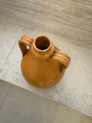 Anfora in ceramica con due manici, tipica della tradizione pugliese. - Forma panciuta e collo stretto. - Due anse laterali. - Finitura lucida.