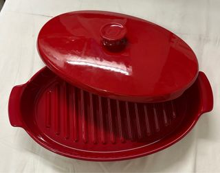 Papilotte Emile Henry in ceramica rossa. Papilotte di Emile Henry è lo strumento da cottura ideale per cucinare ogni tipo di pesce al cartoccio. La pirofila Emile Henry passa direttamente dal forno al tavolo in lavastoviglie, Il fondo rialzato e scanalato permette al piatto di cuocere bene ugualmente anche alla base. Resiste alle alte temperature così come alle basse temperature, ideale quindi non solo per cucinare, ma anche per congelare. Misure: 41x24x10 cm Lavabile in lavastovigliey - Forma ovale. - Design con griglia interna.