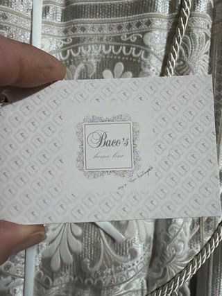 Linea coordinata di tessuti trapuntati con un elegante motivo decorativo. - Motivo floreale e geometrico. - Bordatura in cordoncino. - Colori: beige e grigio.