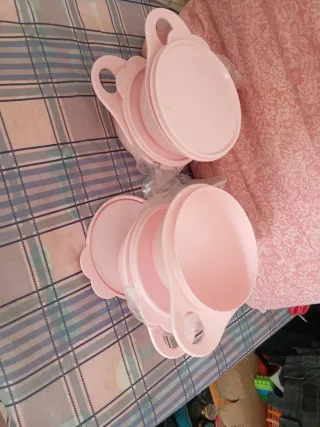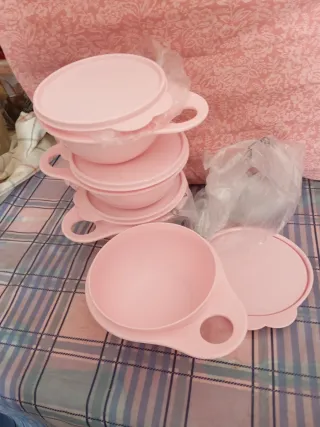 Set di 4 ciotoline in plastica, perfette per ogni occasione.ermetiche ai liquidi all'aria ed al vapore.co.oxe per monoporzioni - Capacità di 600 ml ciascuna. - Design pratico con manico.