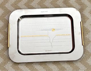 Vassoio vintage acciaio 18/10 decorato in oro 24kt