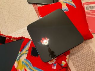 Set di sottobicchieri quadrati con finitura laccata nera. - Design elegante e moderno. - Proteggono le superfici da macchie e graffi. Il segno rosso è un riflesso della foto