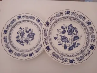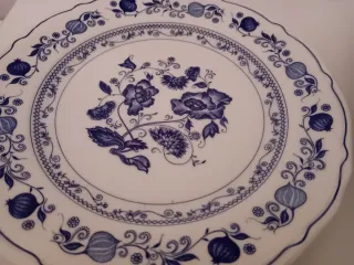 Elegante servizio di piatti in porcellana con un raffinato motivo floreale blu su sfondo bianco. Aggiunge un tocco di classe alla tua tavola. - Design con fiori e frutti. - Bordo decorato a onda.