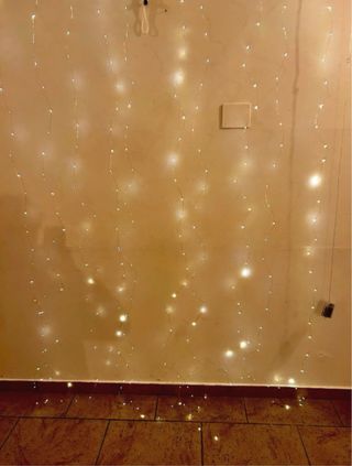 Tenda luminosa a LED, perfetta per creare un'atmosfera magica. - Dimensioni: 3 metri per 3 metri. - Alimentazione a batteria. Tenda a luci led gialle, dimensioni 3x3 metri, alimentazione a batteria AA (incluse), più modalità di illuminazione.