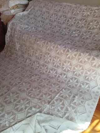 Bellissimo copriletto vintage realizzato a mano all'uncinetto. Un pezzo unico che aggiunge un tocco di eleganza e artigianalità alla tua casa. 220/250 - Motivo floreale intricato. - Finitura a mano.