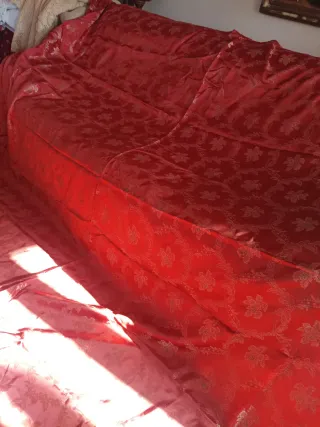Elegante copriletto con un raffinato motivo floreale. 190/220 - Tessuto in seta con finitura satinata. - Design damascato con dettagli dorati. - Colore vivace che unisce rosa e rosso.