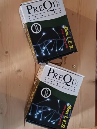 Set di luci natalizie PREQU. Sono 2 catene luminose USO INTERNO ED ESTERNO - Colore: Bianco Ghiaccio - Tipo: LED - Alta luminosità - Lunghezza: vedi foto
