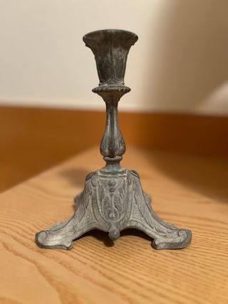 Elegante portacandele con finiture decorative. - Realizzato in metallo resistente. - Design classico con base a treppiede. - Dettagli intagliati sulla base e sul fusto.