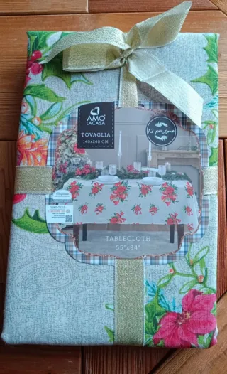 Tovaglia natalizia perfetta per le feste - Misure: 140x240 cm - Adatta per 12 persone - Design natalizio Nuovo mai usato 60% poliestere 40% cotone