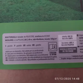 Gazebo da esterno, perfetto per il giardino o eventi all'aperto. Facile da montare e smontare. - Dimensioni: L3 x P4 x H 2,08/2,48 m - Tubi: 40x40mm - Tessuto: 180g/m² - Adatto per uso domestico.