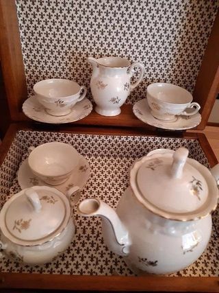 Elegante servizio da Caffè degli anni '40 - Mitterteich Bavaria U.S. ZONE Servizio in fine porcellana bavarese composto da 4 tazzine, lattiera, caffettiera e zuccheriera. Possibile spedizione