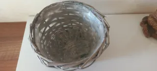 Cesto decorativo in materiale intrecciato, ideale per composizioni floreali o come portaoggetti. - Design rustico e versatile. - Finitura in colore grigio e beige.