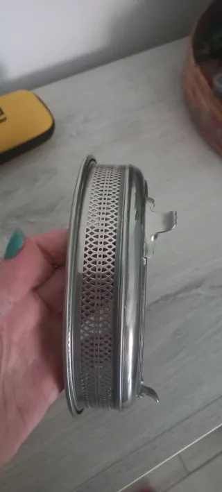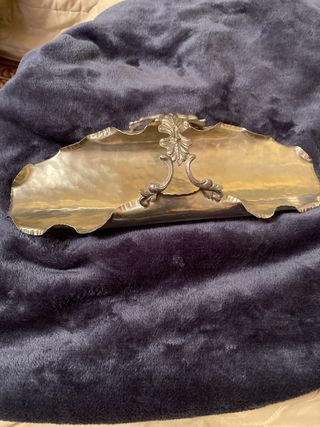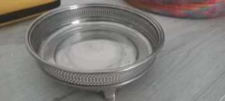 EElegante vassoio vintage con finitura argentata. - Design con bordo traforato. - Base rialzata su piedini. - Ideale come centrotavola o portaoggetti.