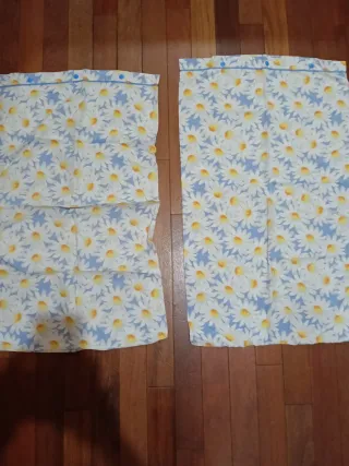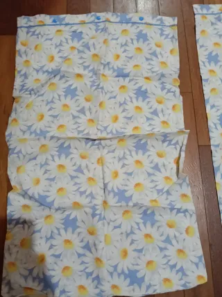 Federe per cuscino con margherite, tutto in ottime condizioni. Colore bianco, blu e giallo.