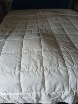 Poco usato. Leggero, adatto per le mezze stagioni o per ambienti molto caldi. Ha qualche piccolo filo tirato e pallini di imbottitura che fuoriescono a rovescio. Ottima nel complesso - Motivo a quadri trapuntato. - Finitura lucida e liscia.