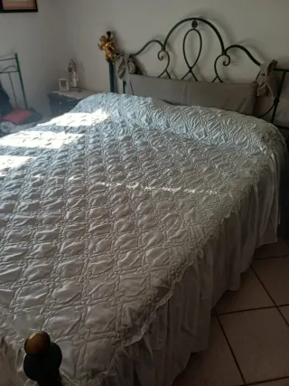 Bellissimo copriletto matrimoniale realizzato a mano all'uncinetto. - Motivo floreale bianco. - Finitura con bordo lavorato. - Ideale per dare un tocco romantico alla camera da letto.