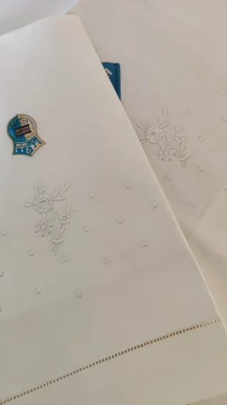 - Due lotti di tessuto a metraggio (non ancora confezionato) da usare per lenzuola, tovaglie o biancheria. - Realizzati in cotone bianco grezzo di alta qualità, molto spesso usato per la biancheria da letto matrimoniale o da corredo. - Cartellini originale Bassetti - Nuovi, mai nemmeno aperti. Fanno parte di un corredo anni '50. Dovevano essere trasformati in lenzuola ma sono rimasti intonsi. - Qualche leggerissimo ingiallimento - Misurano circa 240×290 cm (nell'inserzione ho selezionato King perchè se no non permette di pubblicare, ma è molto più grande come vedete)
