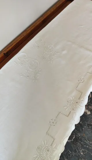 Elegante lenzuolo vintage con delicati ricami floreali e motivi a volute. Lenzuolo da una piazza, misure 238×148, ha solo qualche punto rovinato (vedere ultima foto), diversamente in buone condizioni ,da come si vede dalle foto - Motivo floreale ricamato. - Bordi con lavorazione a giorno. A causa del piccoli difetti, vendo a un ottimo prezzo di 15€, le foto sono parte integrante della descrizione.