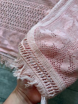 Copriletto uncinetto fatto a mano rosa