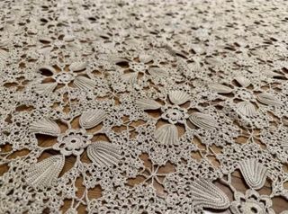 Elegante copriletto realizzato a mano con un intricato motivo all'uncinetto. - Design floreale e a foglia. - Finitura artigianale di alta qualità. colore écru. Misure: 240cm x 250cm