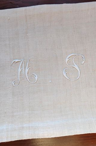 Lenzuolo antico in puro lino con monogramma GG