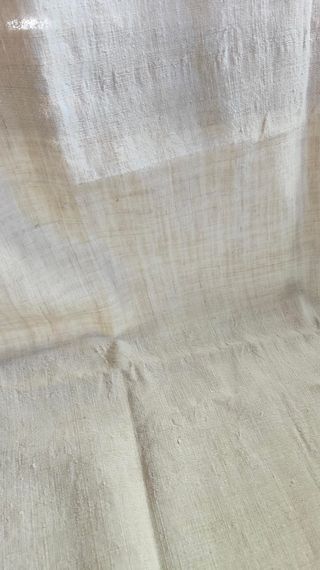 Antico lenzuolo dalla tessitura rustica, a tre teli perfettamente cuciti assieme come da antica tradizione, in tessuto di misto canapa-lino dalla trama robusta e corposa, con una tonalità calda e naturale colore panna-crema, con le classiche striature delle fibre vegetali utilizzate e non sottoposte a sbiancamento che ho tentato di mettere in evidenza attraverso le foto. E' un tessuto eclettico per l'arredo naturale della casa, è stato conservato con molta cura, è stato comunque rinfrescato con un meritato lavaggio, in condizioni perfette. Misure: Larghezza 190 cm Lunghezza 270 cm Peso 1,9 kg