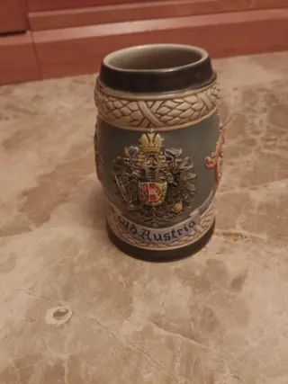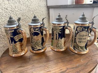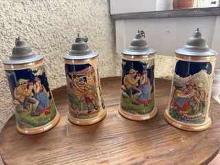 Set di 6 brocche di birra con design di Vienna e Austria. Decorate con scene di città. Realizzate in ceramica.