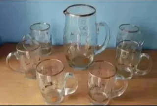 Caraffa e 5 Bicchieri da Birra in Cristallo Dorato