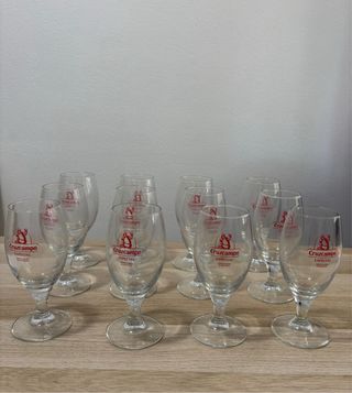 Set di dodici bicchieri da birra con rilievi di Cruzcampo. Nuovi, mai usati. Design classico ed elegante. Ideali per gustare la tua birra preferita.