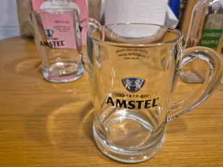 Brocca di birra Amstel con capacità di mezzo litro. Ideale per gustare la tua birra. Disponibili 4 brocche nuove, mai usate. Prezzo per tutte e 4: 3€ ciascuna. Design classico ed elegante. Realizzata in cristallo di alta qualità. Presenta il logo di Amstel e dettagli dorati.