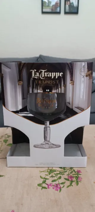 Elegante calice per birra del marchio La Trappe, birre trappiste, Trappist. Dettagli dorati sul bordo superiore. Base con rilievo del marchio. Completamente nuovo, mai usato, ricevuto in un pack di 4 birre e non ho spazio per altre tazze, lo inauguri tu. Infatti, come si vede nelle foto, è nella sua confezione originale. Regalo originale per queste festività per gli amanti della buona birra. Consegna a mano a Getafe, sud di Madrid.