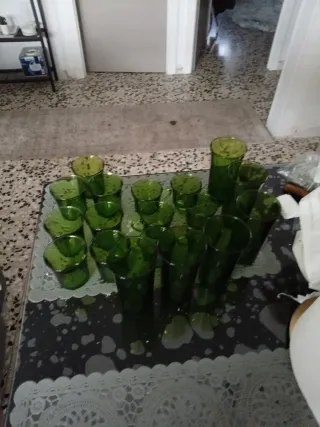 Set di bicchieri vintage con 10 calici e caraffa verde
