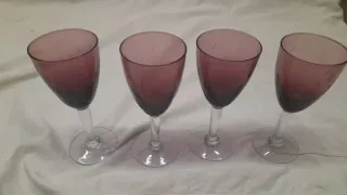 Set di quattro calici da vino con un elegante design intagliato. Colore viola che sfuma al trasparente. Cristallo di alta qualità.