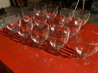 Elegante set di 13 calici in cristallo con stelo basso. - Design classico e raffinato. - Perfetti per ogni occasione. - Aggiungono un tocco di classe alla tavola.