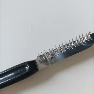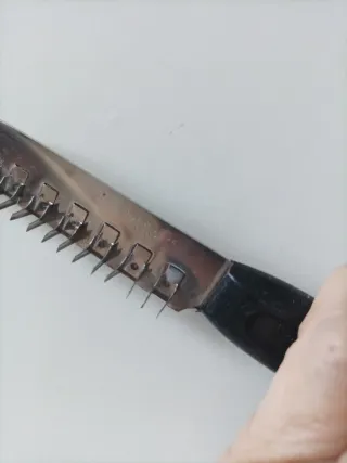 Coltello batticarne con lama in acciaio inox e manico in plastica nera.Brev. 23632 - Lama con punte per intenerire la carne. - Design ergonomico per una presa comoda.